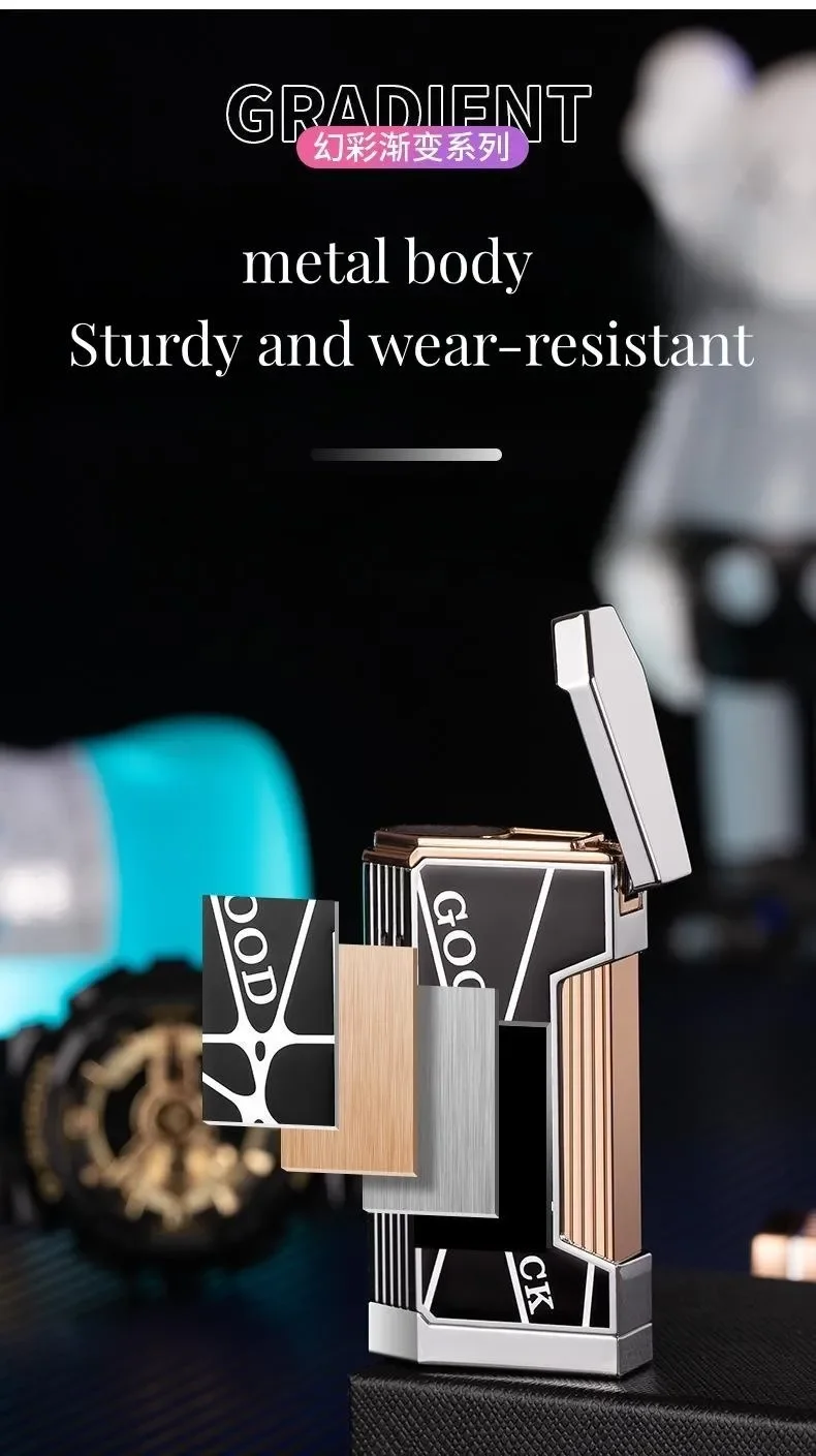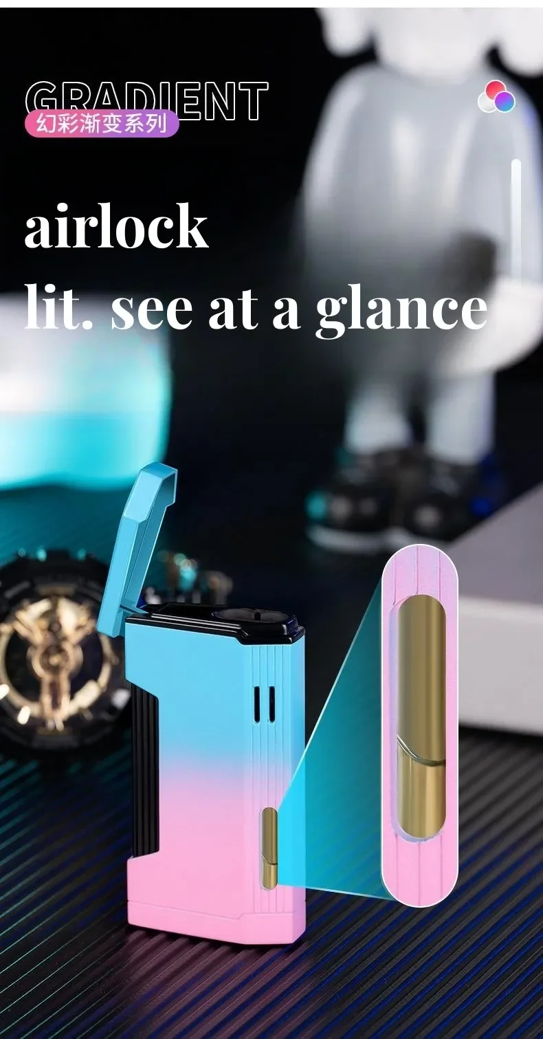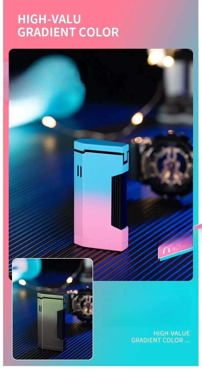 Briquet progressif à double feu en métal, coupe-vent, Jet Blue Flame, torche à turbine, couvercle ouvert, allume-cigare Portable, cadeau pour hommes, nouveau