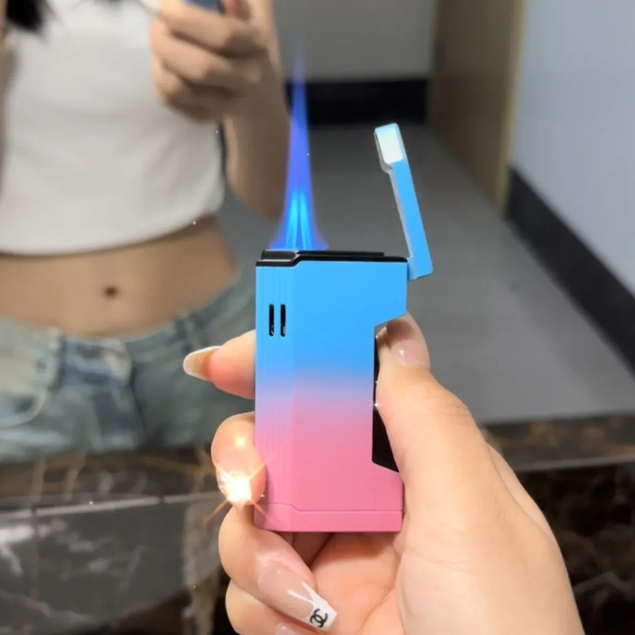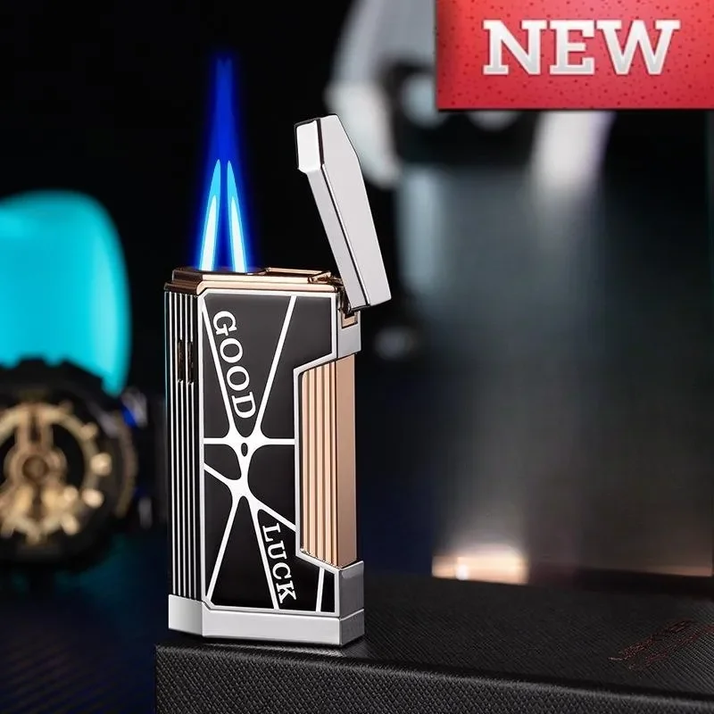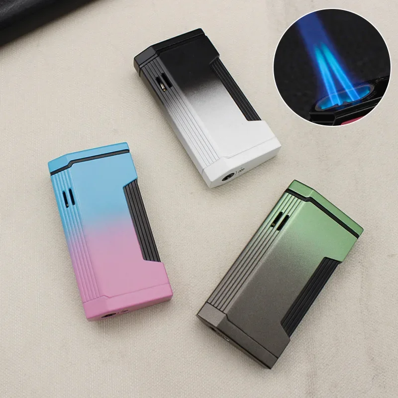 Briquet progressif à double feu en métal, coupe-vent, Jet Blue Flame, torche à turbine, couvercle ouvert, allume-cigare Portable, cadeau pour hommes, nouveau