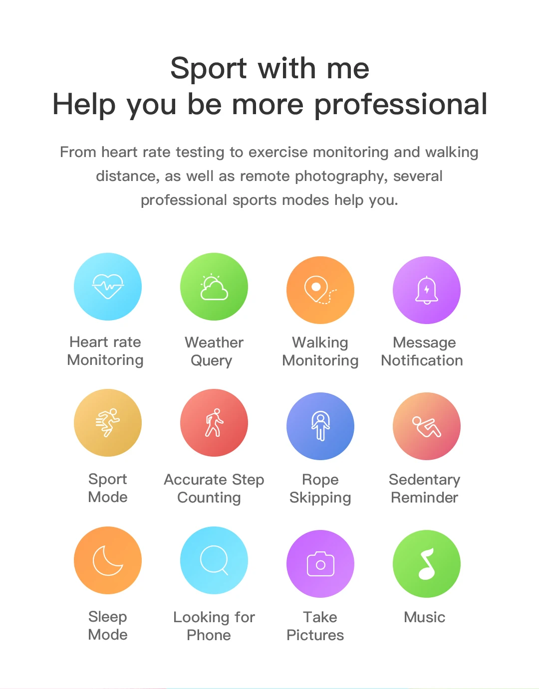 Montre intelligente hommes femmes Bluetooth & fréquence cardiaque